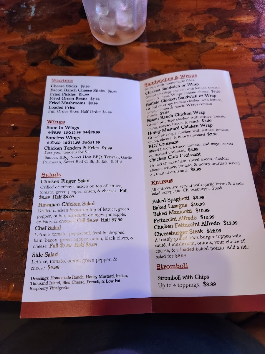 Beyond pizzas and pastas, the menu features a mix of tasty bites and salads that complement the friendly, unpretentious atmosphere. Items like fried pickle spears, boneless wings with a choice of sauces, and bacon ranch cheesesticks offer casual yet flavorful choices perfect for sharing. For those looking for something lighter, fresh side salads and chef salads provide a well-rounded option.